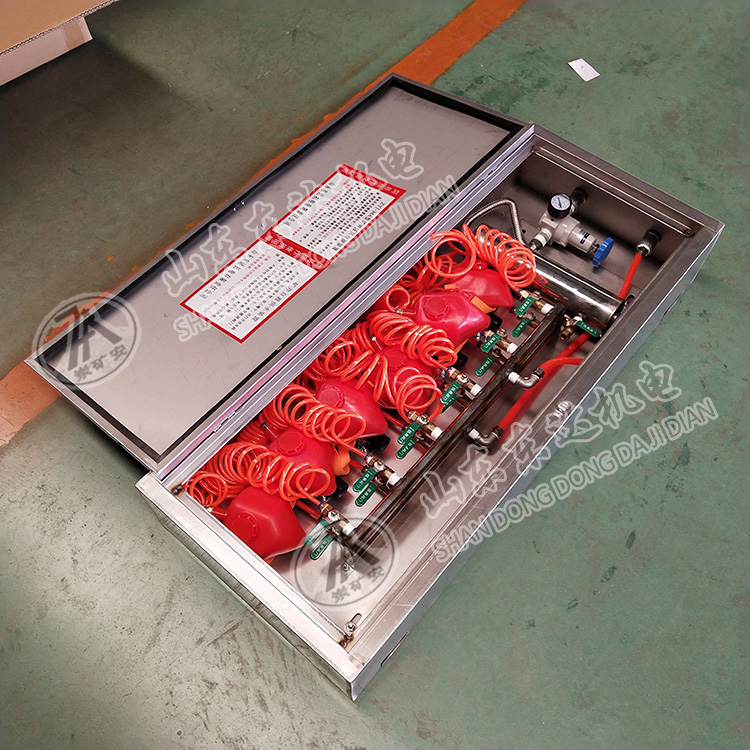 7、应逐个打开自救装置,并做好通风检查。如果发现气体不足或没有气流,应立即更换。如果有任何连接或漏气,应及时处理,以确保设备处于良好的工作状态。压缩空气自救器袋上的煤尘应及时清理,并经常保持清洁。