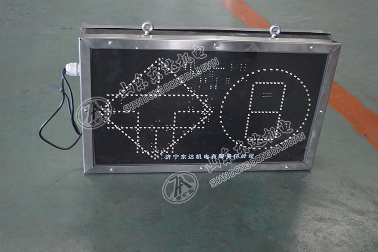 该显示屏是以指示发光二极管组成“正在行车严禁行人”字样,以提示井下行人安全行走。