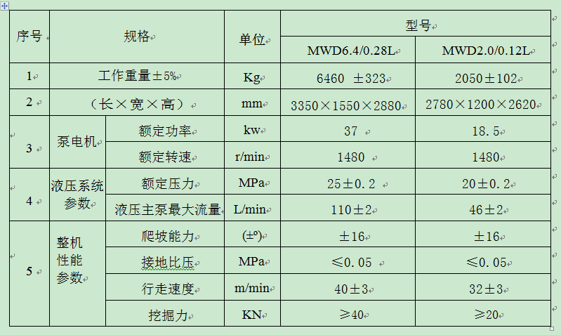 MWD6.4/0.28L煤矿用液压挖掘机参数